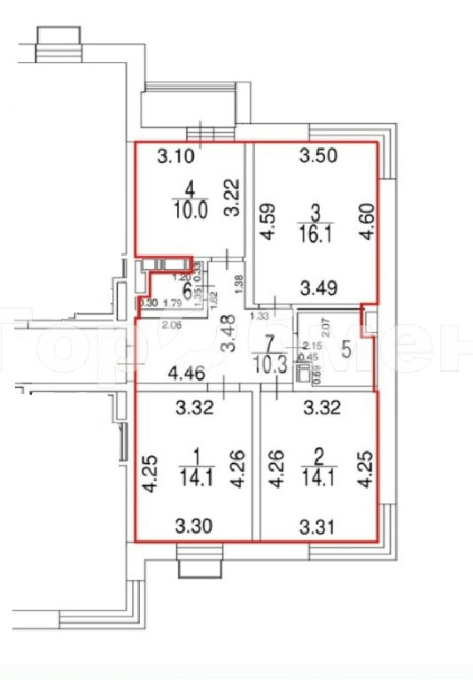 Комнаты: 16.1 14.1 14.1 м2